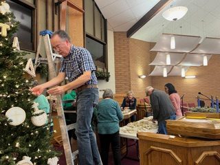 Prepare for Advent and Christmas. Decorating of the trees in the Sancturary and the narthex area.